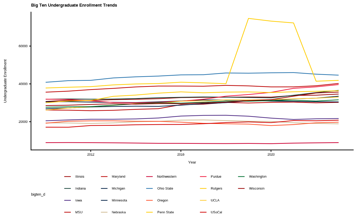 labs(title = "Big Ten Undergraduate Enrollment Trends",