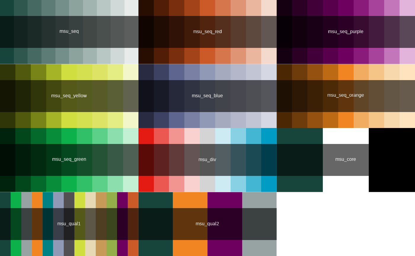 A plot of all colour palettes available in the package.